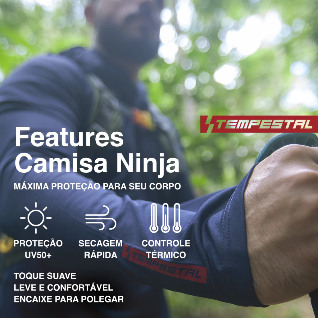 A Camisa Ninja UV50+ da Tempestal foi desenvolvida para praticantes de atividades ao ar livre que necessitam de proteção solar extra.