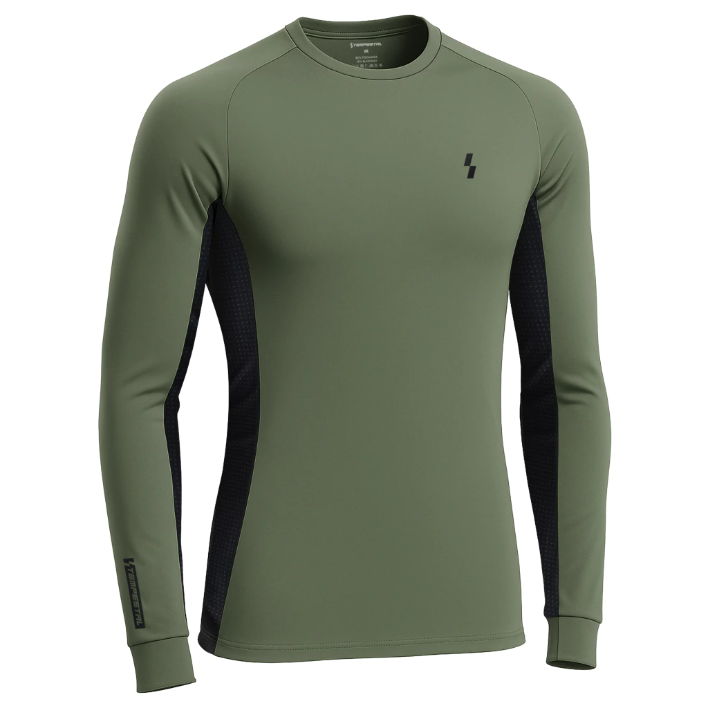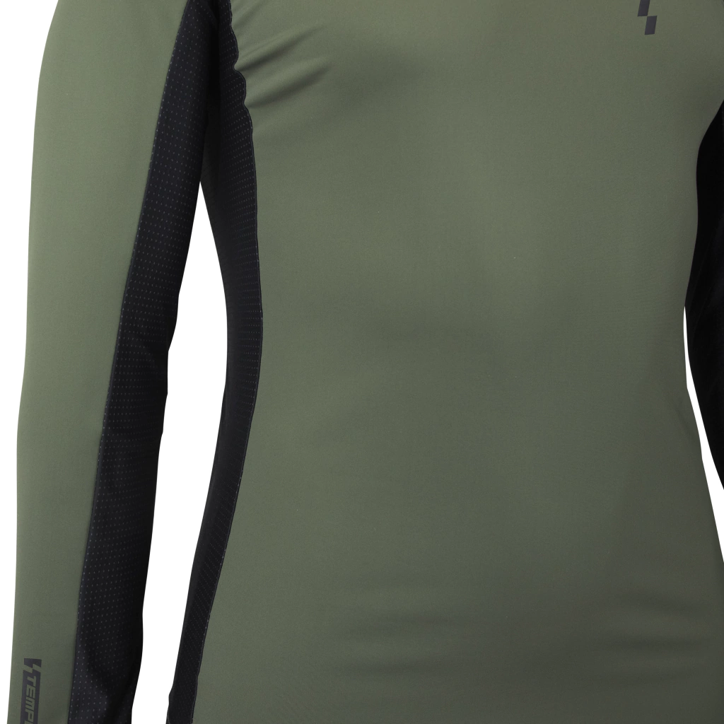 O tecido respirável nas laterais do tronco e braços fornece conforto extra já que permite uma melhor troca de calor e rápida evaporação do suor.